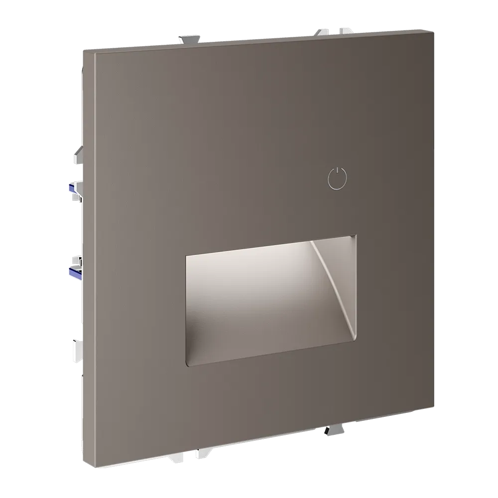 Подсветка устанавливается в стандартный подрозетник и совместима со всеми рамками серии S70 — пластиковыми и стеклянными, что позволяет интегрировать её в любую композицию на стене: рядом с выключателем, розеткой или терморегулятором.