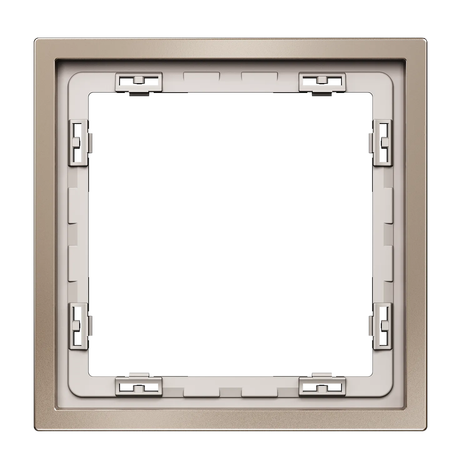 Обеспечивает быстрое и легкое соединение механизма с рамкой. Восемь фиксаторов по периметру нивелируют неровности стены и надежно удерживают конструкцию.