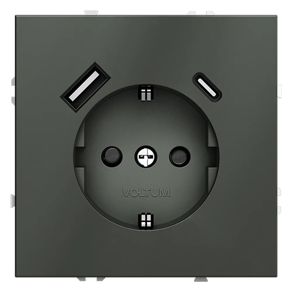 Розетка встраиваемая VOLTUM S70 с заземлением и защитными шторками 16А с USB A+С (титан)