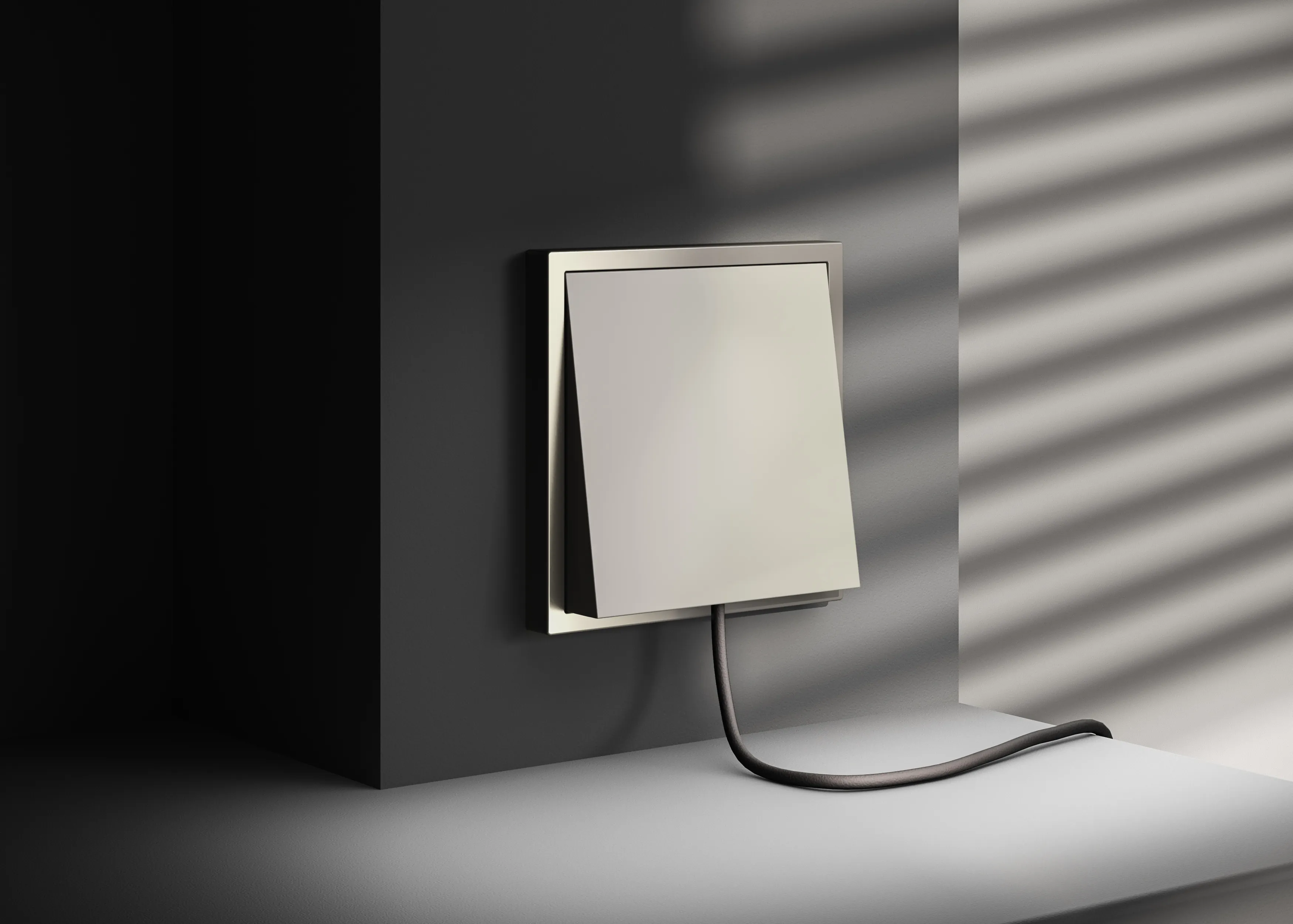 Вывод кабеля легко интегрируется в любую композицию на стене — рядом с розетками, выключателями или мультимедийными устройствами, создавая цельную, продуманную и чистую электрическую инфраструктуру.